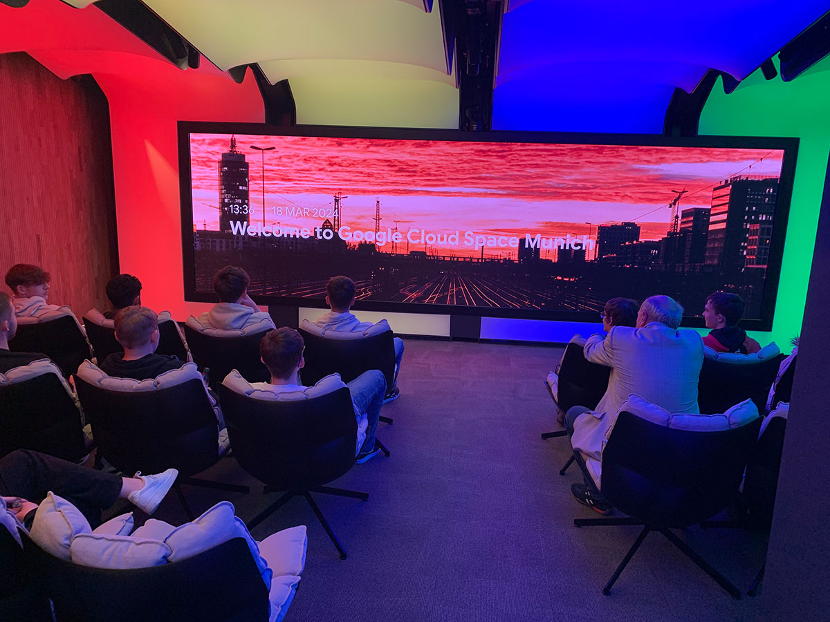 Gut gesättigt begaben wir uns anschließend zum Cloud Space, wo wir einen exklusiven Einblick in die Arbeitsräume für Kunden und Mitarbeiter von Google erhielten. Die beeindruckende Atmosphäre und die innovativen Arbeitsmethoden hinterließen einen nachhaltigen Eindruck bei uns. Besonders beeindruckend war der riesige Bildschirm von enormem Wert, der uns die technologische Überlegenheit von Google eindrucksvoll vor Augen führte.